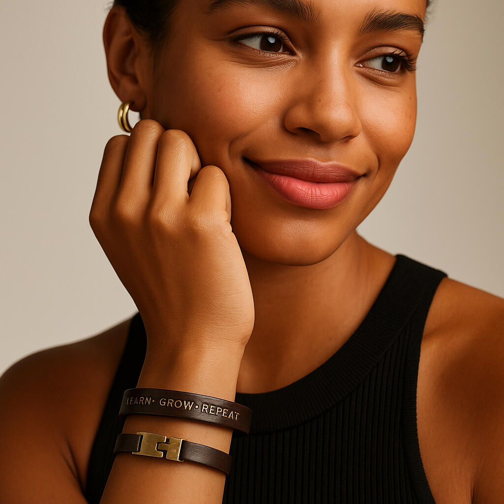 A wearable reminder of clarity and inner strength.Handcrafted from genuine leather, the Memento Bracelet is engraved with a single message:FIND YOUR FREQUENCYMinimal by design. Intentional in meaning.